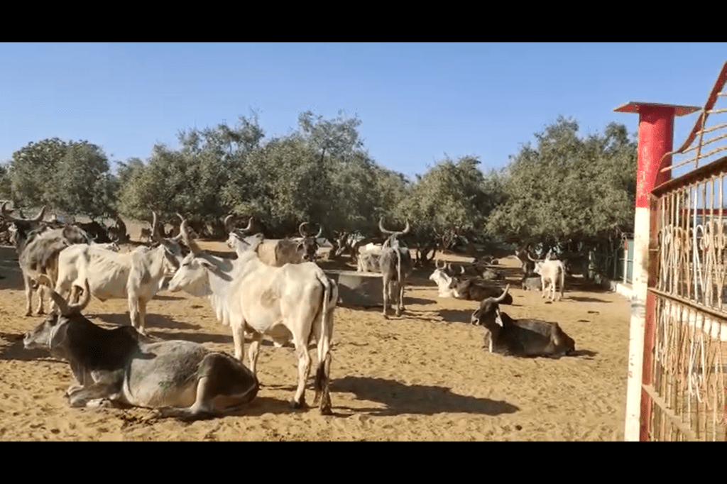 In the past, every village (or cluster) was given some land (around 5-50 hecatres) for grazing of cattle. This land is called gauchar (land for cattle grazing). Today, these lands enjoy the protection of law and no construction or use for commercial purpose is permitted. For squeezing the most out of this policy and the state welfare schemes for cows, people in Rajasthan often adopt a few stray cattle off the road, claim free land around as gochar and start claiming 50 percent (this is what we were told) of the expenditure incurred for rearing the cattle. These numbers are obviously inflated.