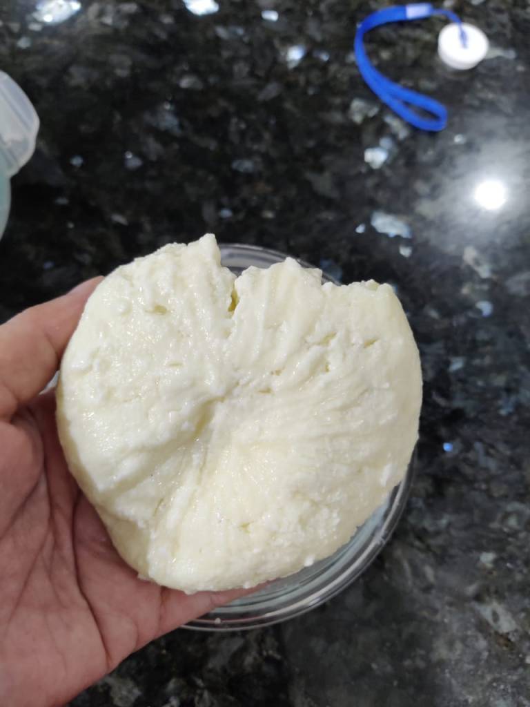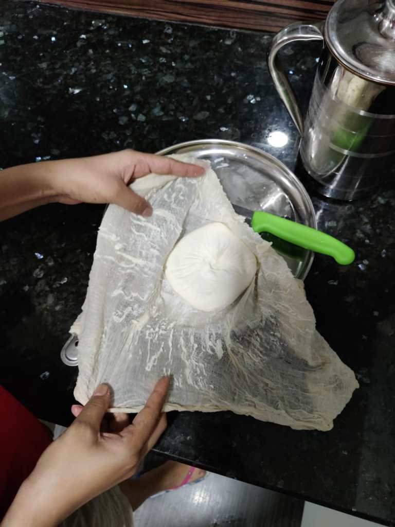 This particular type of cheese does not require Citric acid or starter culture, which means there is no acidification of milk. Instead we jump directly to coagulation by using rennet. The quantity of rennet used however, is double of what’s used in Mozzarella. I am yet to understand the chemistry and biology behind this deviation.